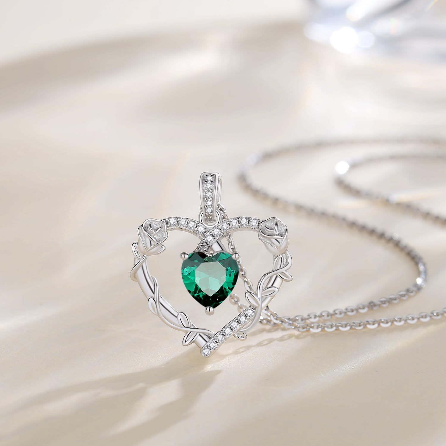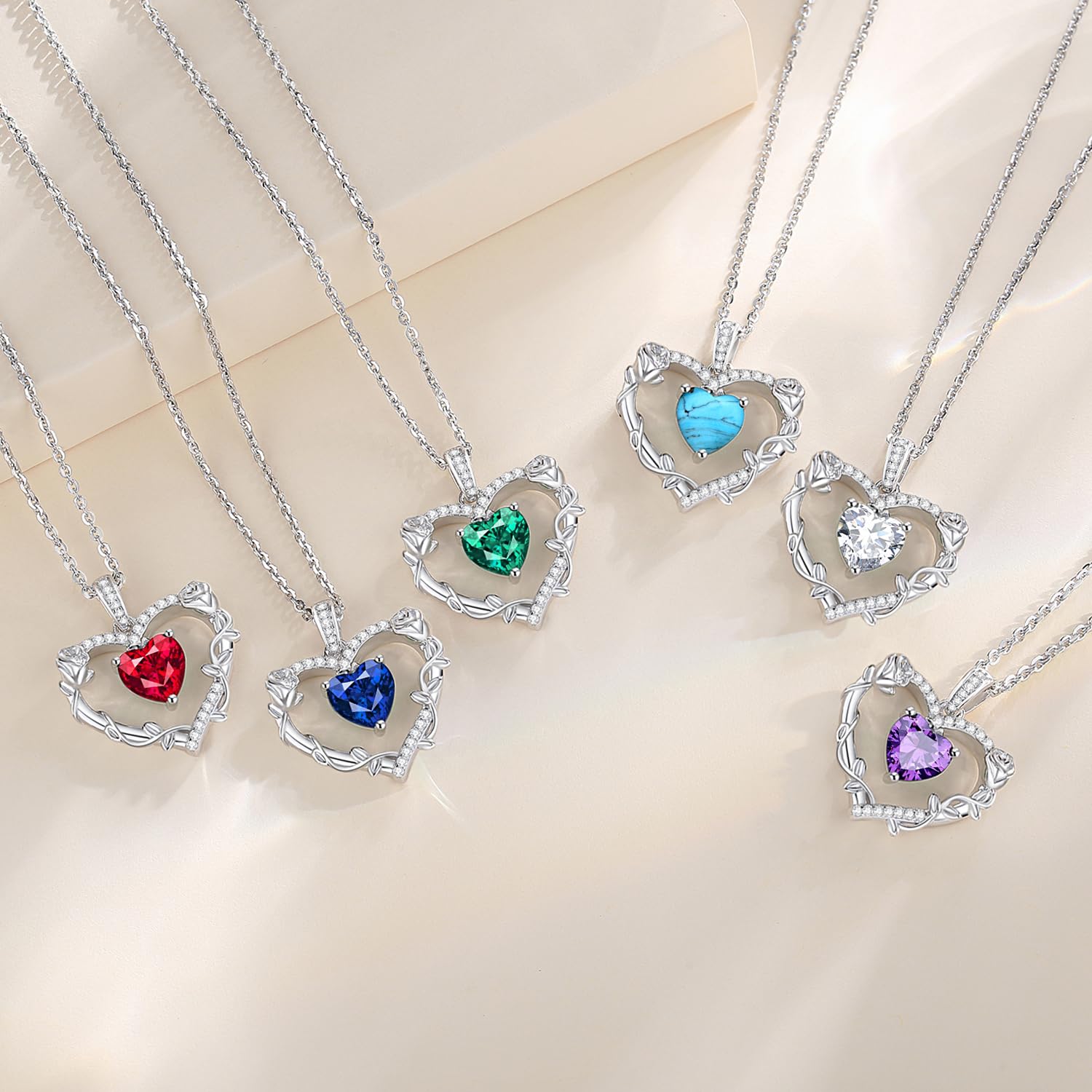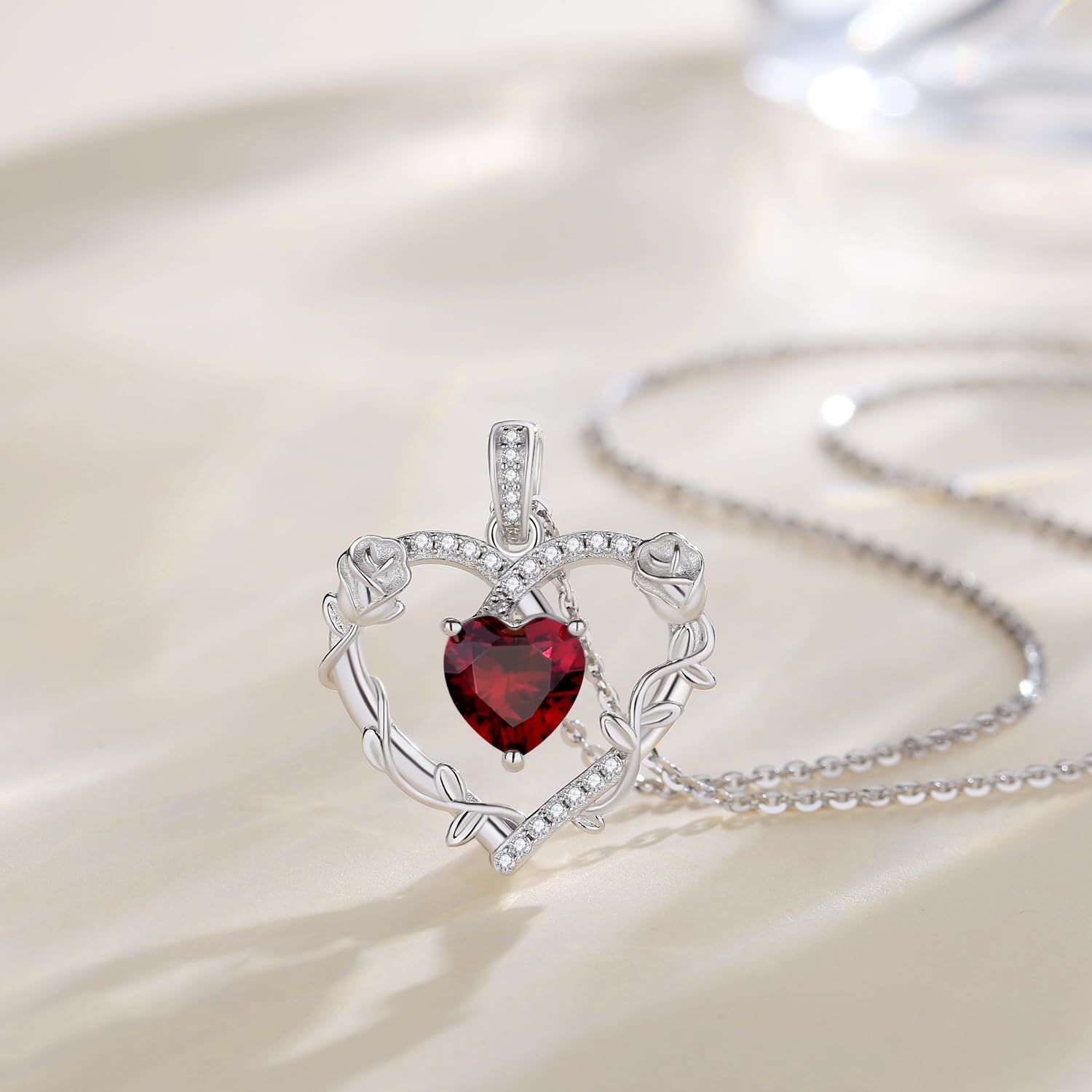 - 💕Fine Jewelry Gifts for Her💕- Celebrate the special woman in your life! This silver heart rose flower necklace with created gemstone is an unique and heartfelt fashionable jewelry. You can make the birthstone gift for your loved one. Our jewelry makes a sentimental surprise and a great gift for Birthday, Anniversaries, Valentine's Day, Mother's Day, Christmas, or Wedding celebration.