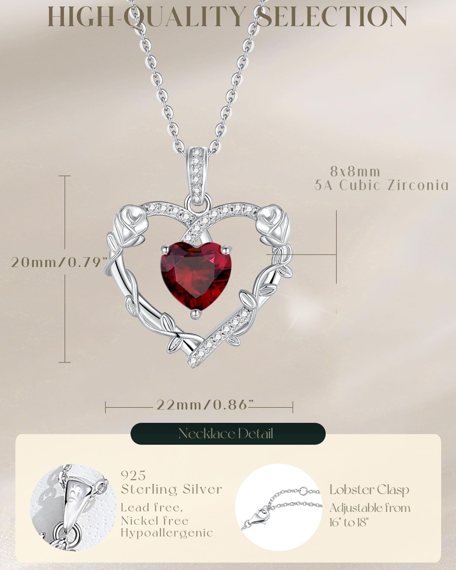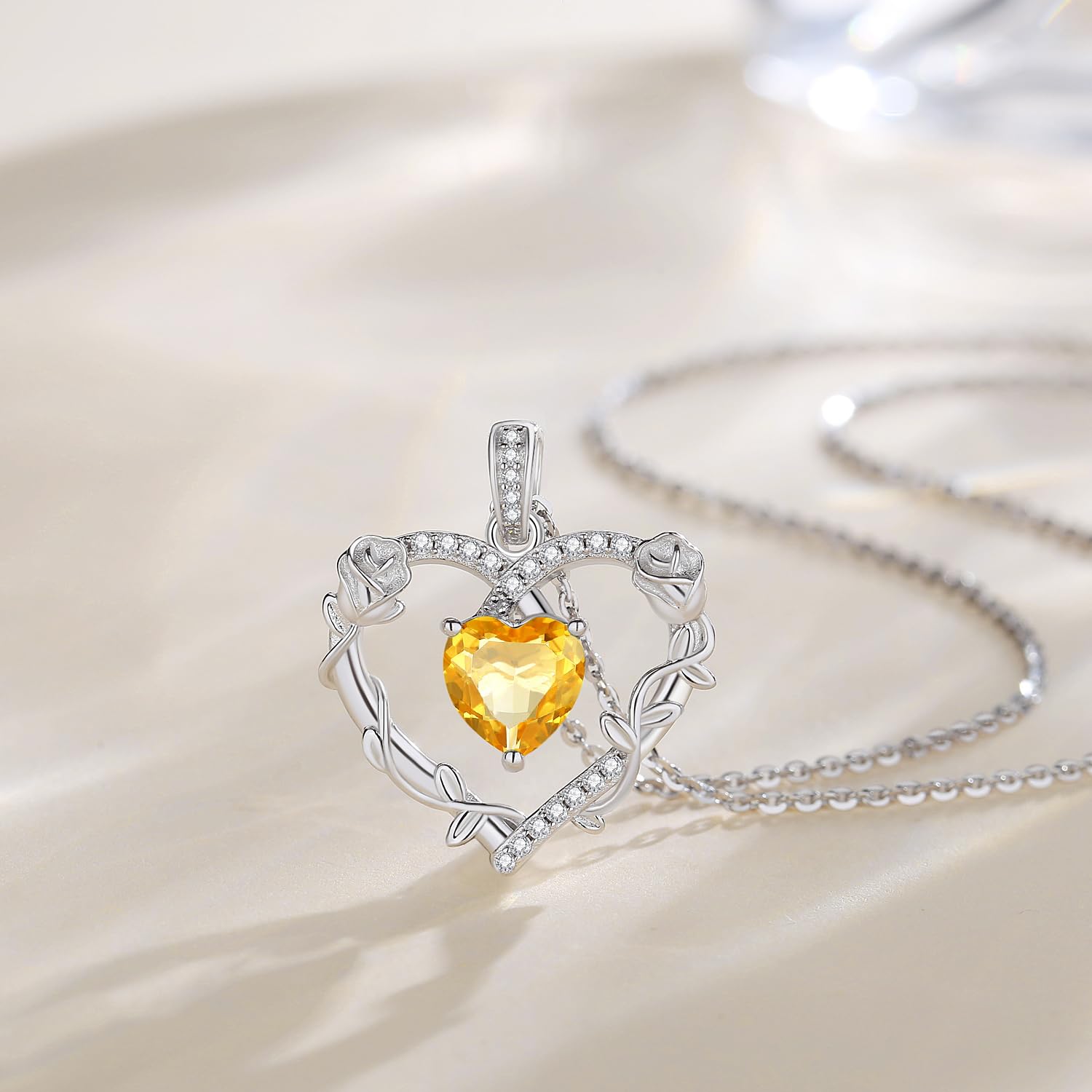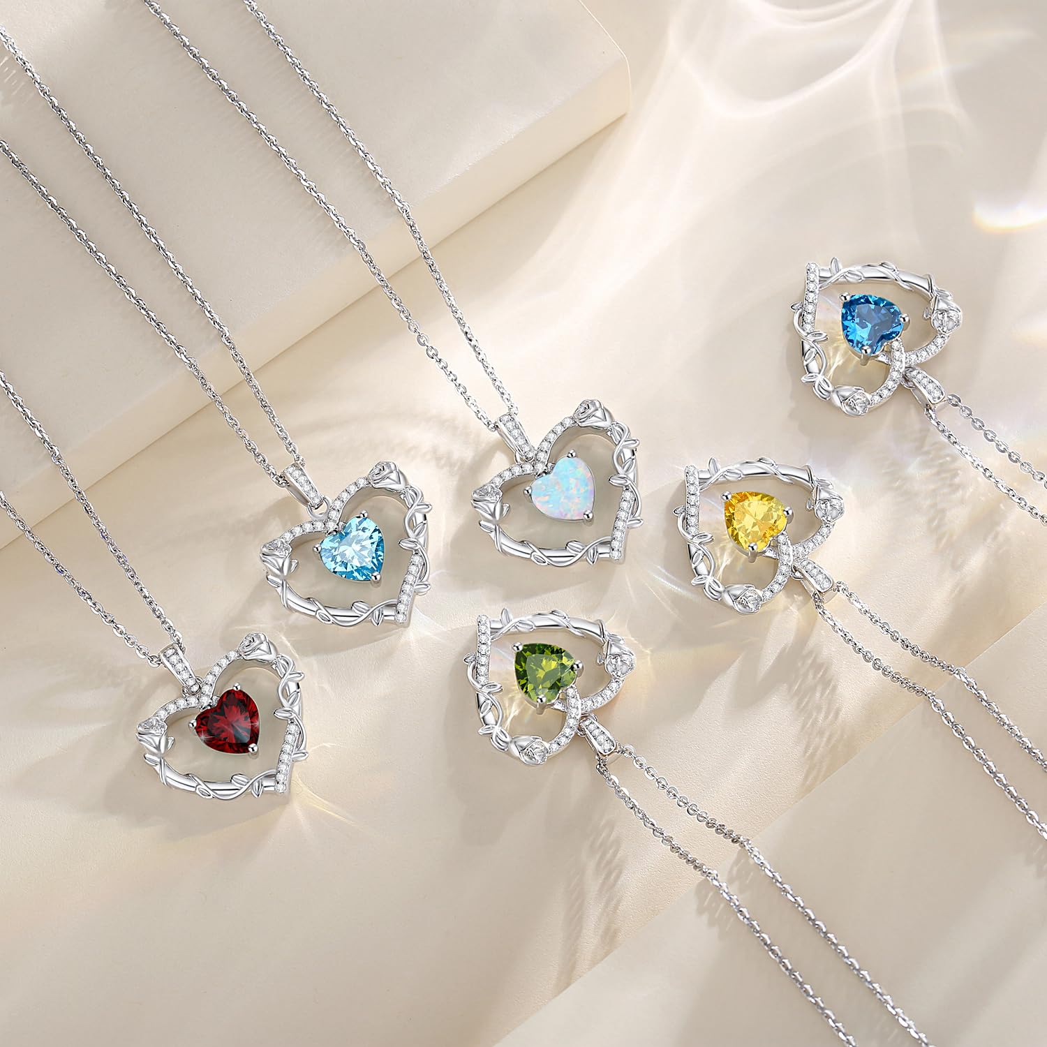 - 💕Fine Jewelry Gifts for Her💕- Celebrate the special woman in your life! This silver heart rose flower necklace with created gemstone is an unique and heartfelt fashionable jewelry. You can make the birthstone gift for your loved one. Our jewelry makes a sentimental surprise and a great gift for Birthday, Anniversaries, Valentine's Day, Mother's Day, Christmas, or Wedding celebration.