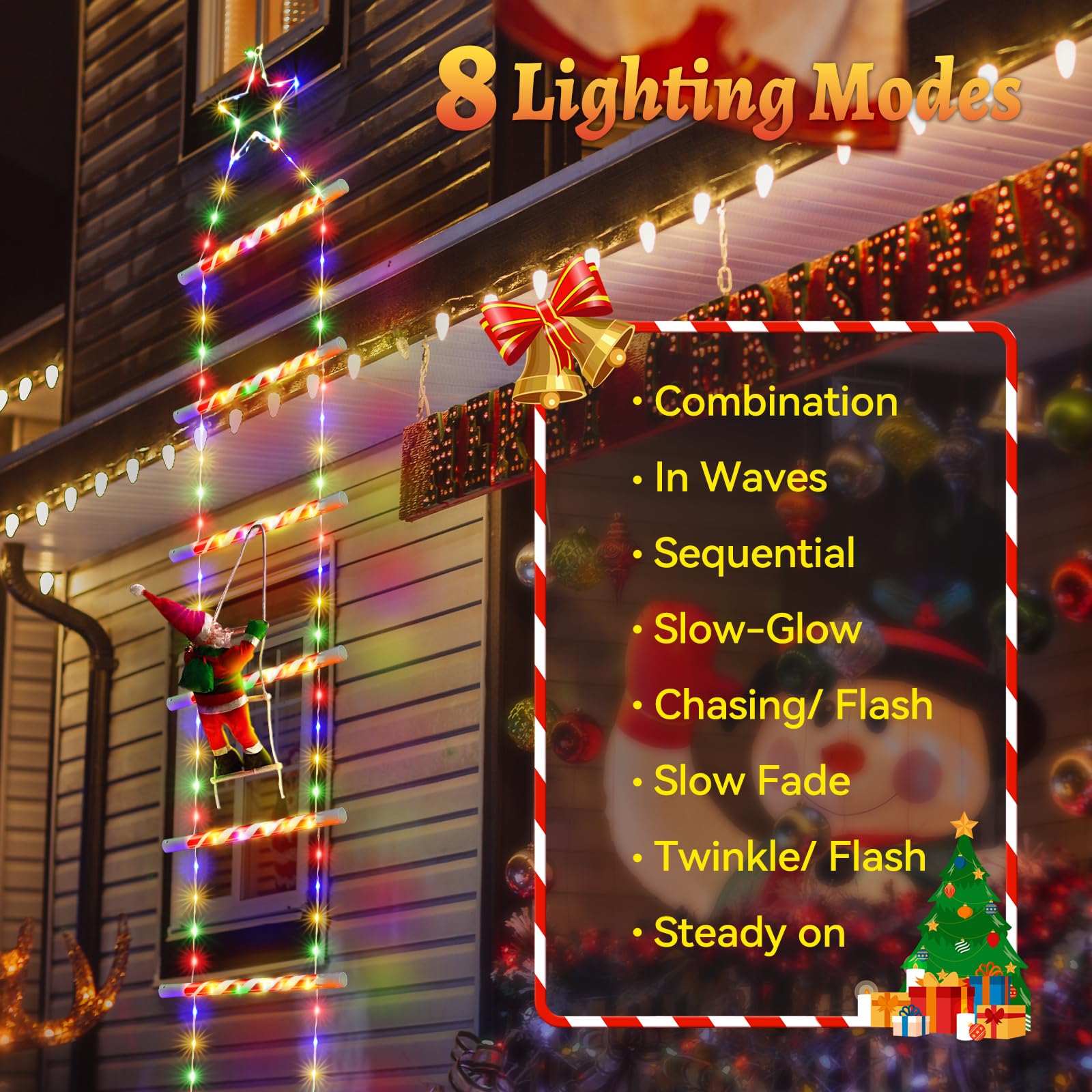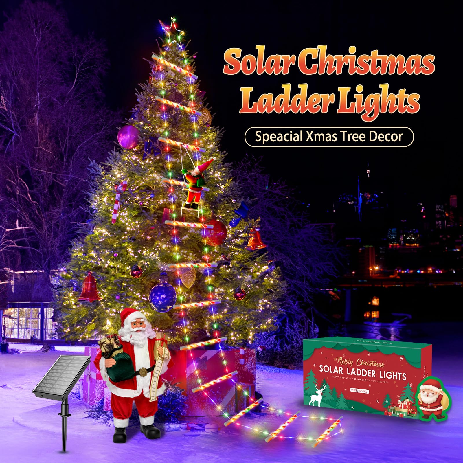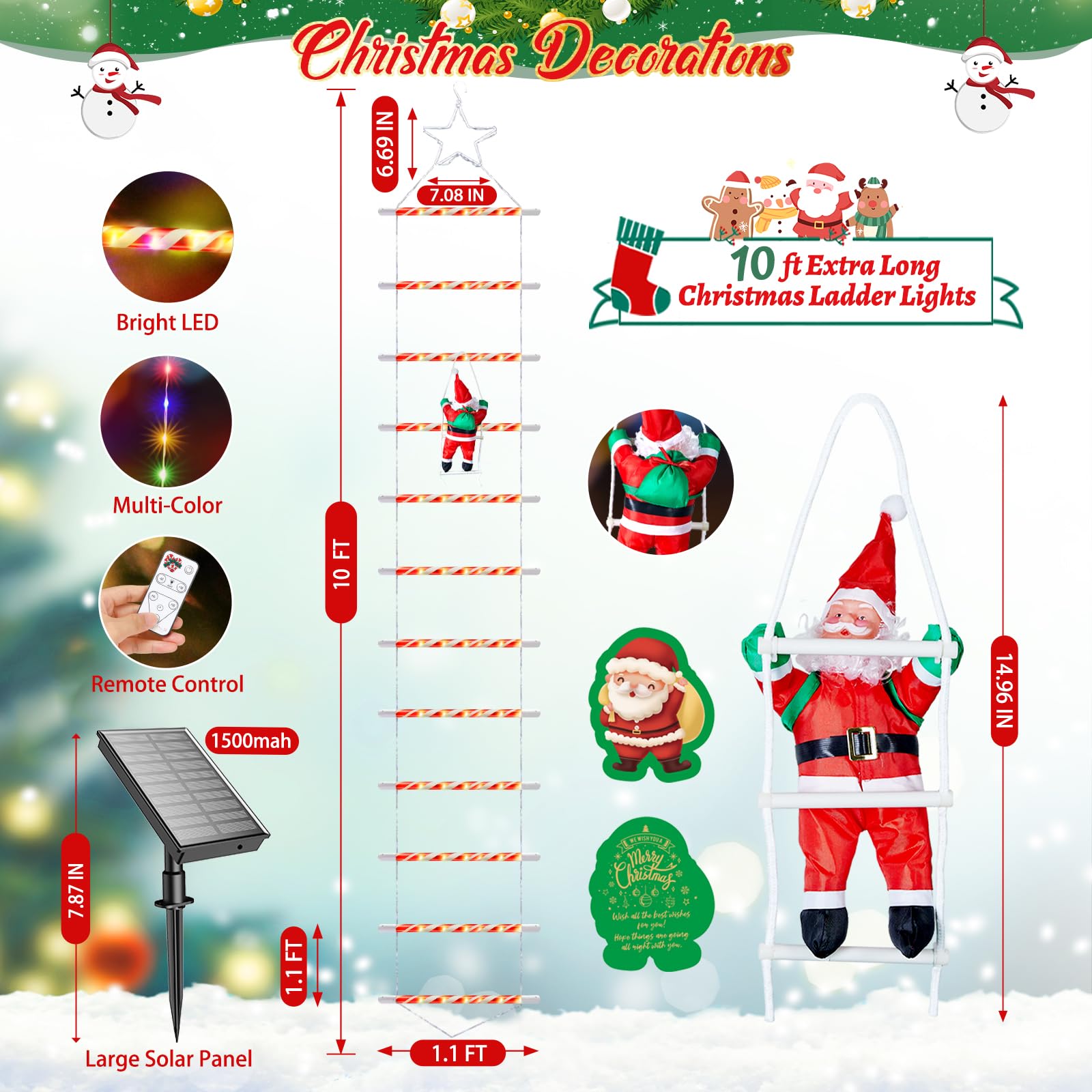 Unique-designed Solar Christmas Lights: Create a magical and Christmas atmosphere with our 2023 Newest Solar Christmas Ladder Lights now! This unique-designed solar Christmas ladder lights features a 10ft rope ladder with 232 colorful lighted LEDs, a 14.96in climbing Santa Claus and a warm white top star. Illuminate your home, garden, yard, window, walls, porch, or Christmas tree with these eye-catching outdoor Christmas decorations and enhance the Christmas festive ambiance.