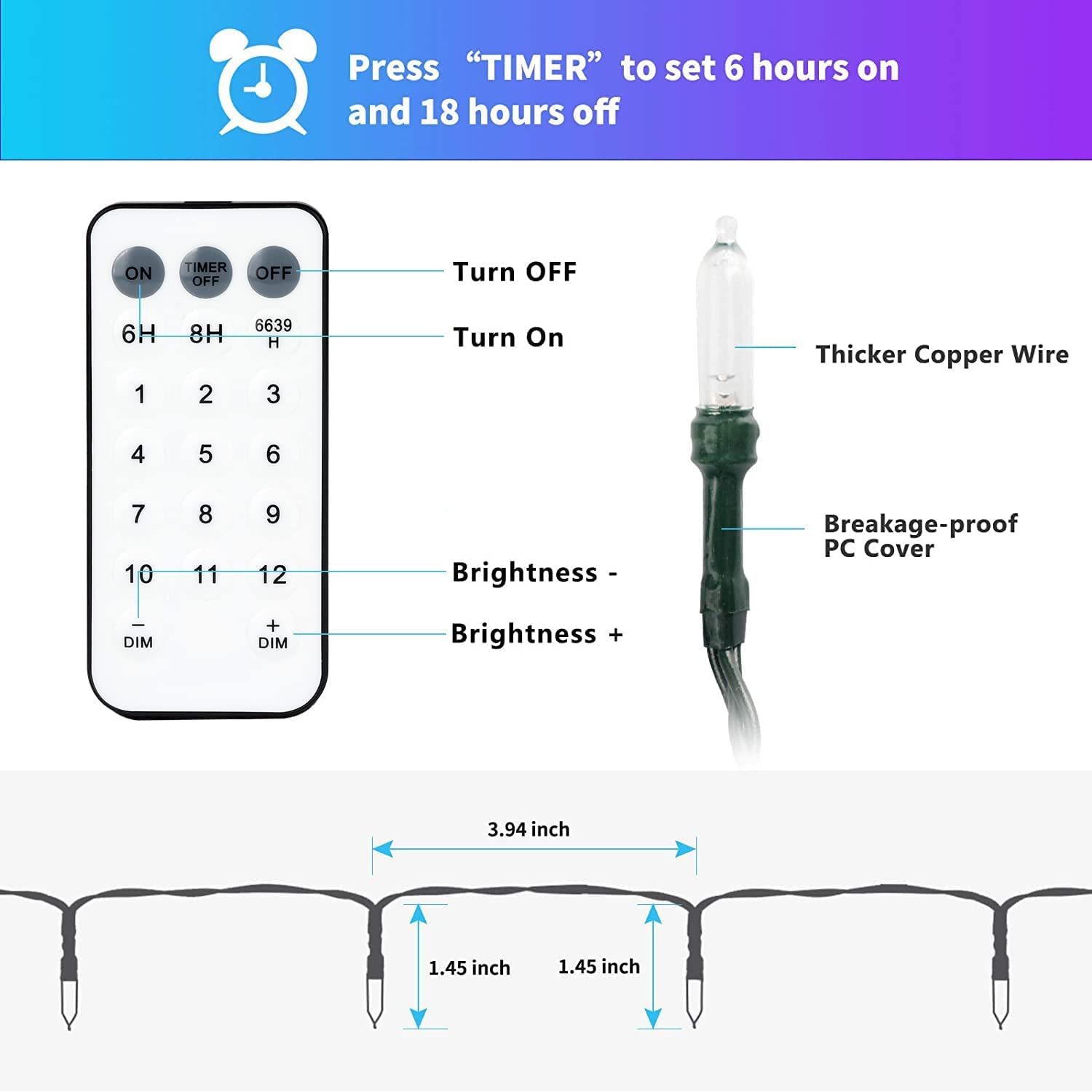 【Timer Function】To free your hand and avoid forgetting to turn off the Christmas lights, the timer function of these mini lights set will be activated at the time you turn on the lights, the led string lights will be 6 hours ON and 18 hours OFF each day automatically.