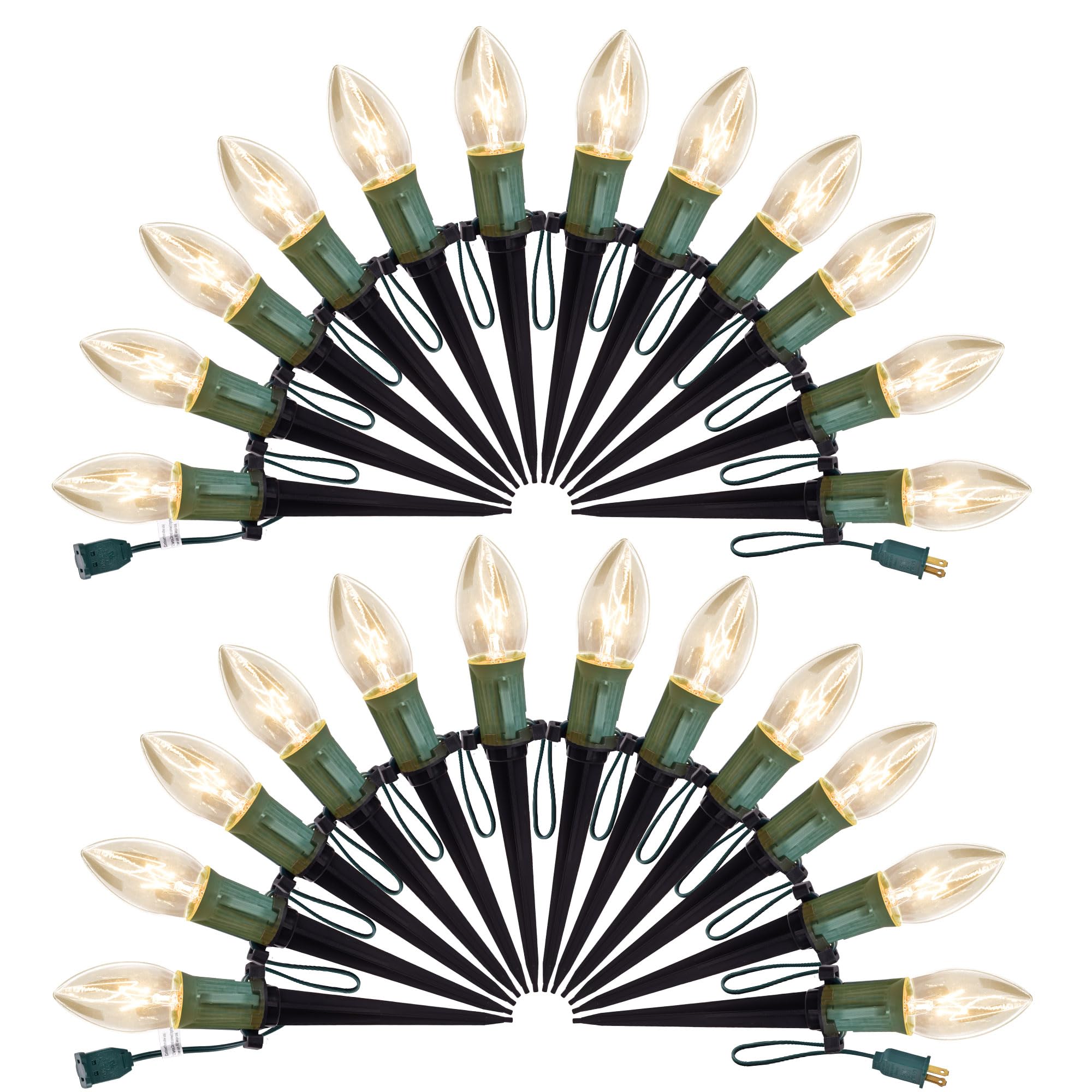 Christmas Decorations Outdoor Yard: 2 Sets of 24 LED C9 Christmas Lights Outdoor with 24 sturdy stakes. Include 1 Replaceable Bulb. 30.75FT long.
