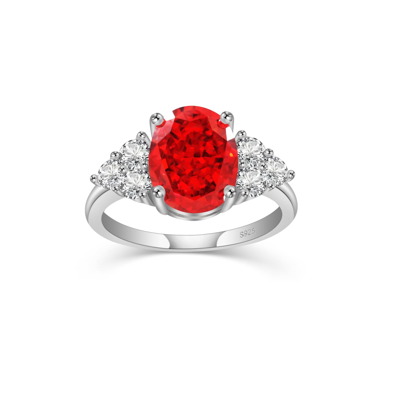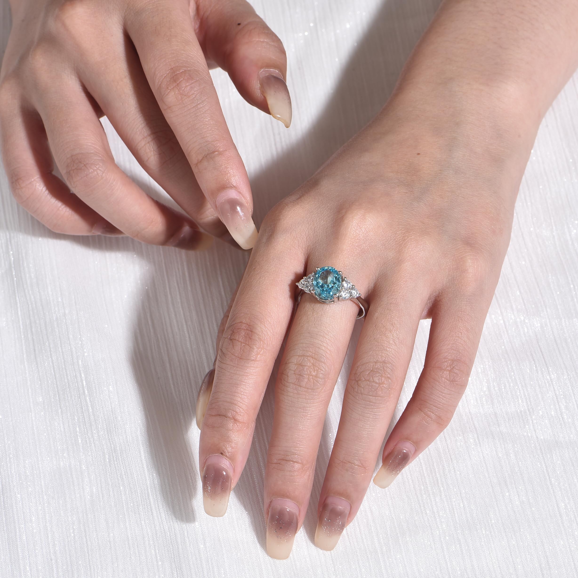 Crushed Ice Cut Ring】:The sterling silver ring blue oval crushed ice cut cubic zirconia has brilliant light and durable structures that no other ring can compare to it.  3 round cubic zirconia on each side of the main stone, show the gorgeous and dazzling light.