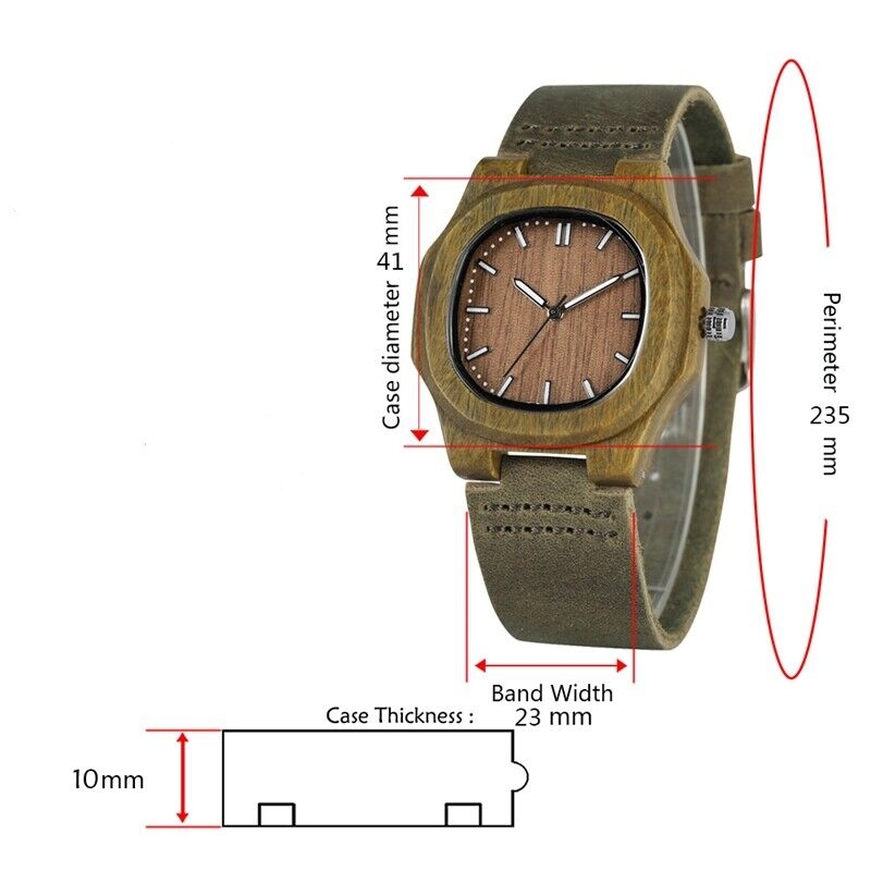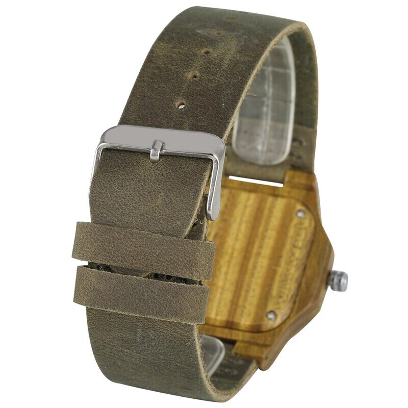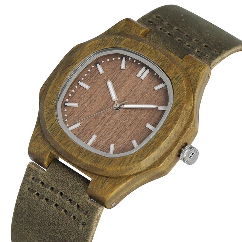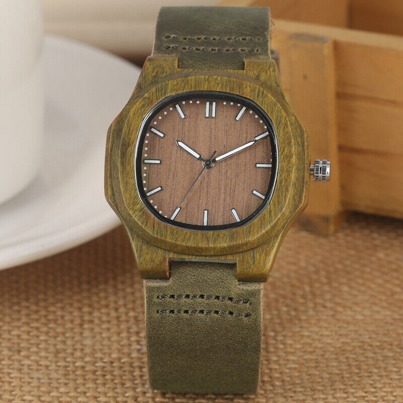 Wooden Wristwatch for Boys Classic Appeal: Emphasize the classic appeal of the wooden wristwatch for boys. The combination of green wood, durable leather, and a concise brown dial creates a timeless accessory suitable for boys who desire a classic choice that complements their evolving taste.