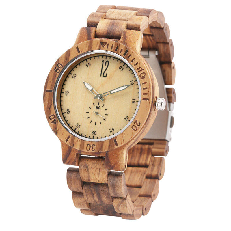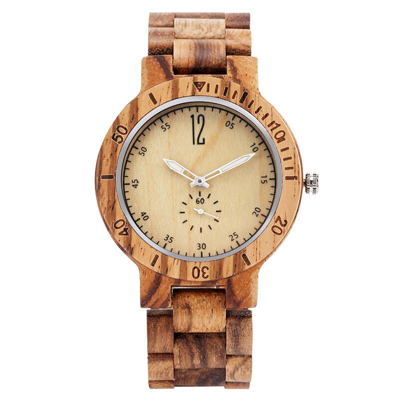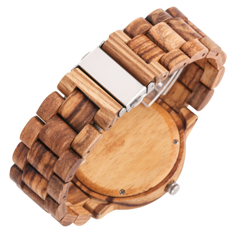 Wood Band Care: Given the elegant all-wood band, consider the care instructions for maintaining its appearance. Avoid exposing the watch to excessive moisture or extreme environmental conditions to preserve the wood's integrity.