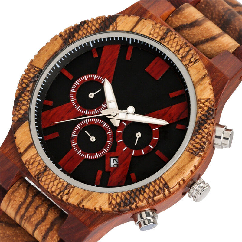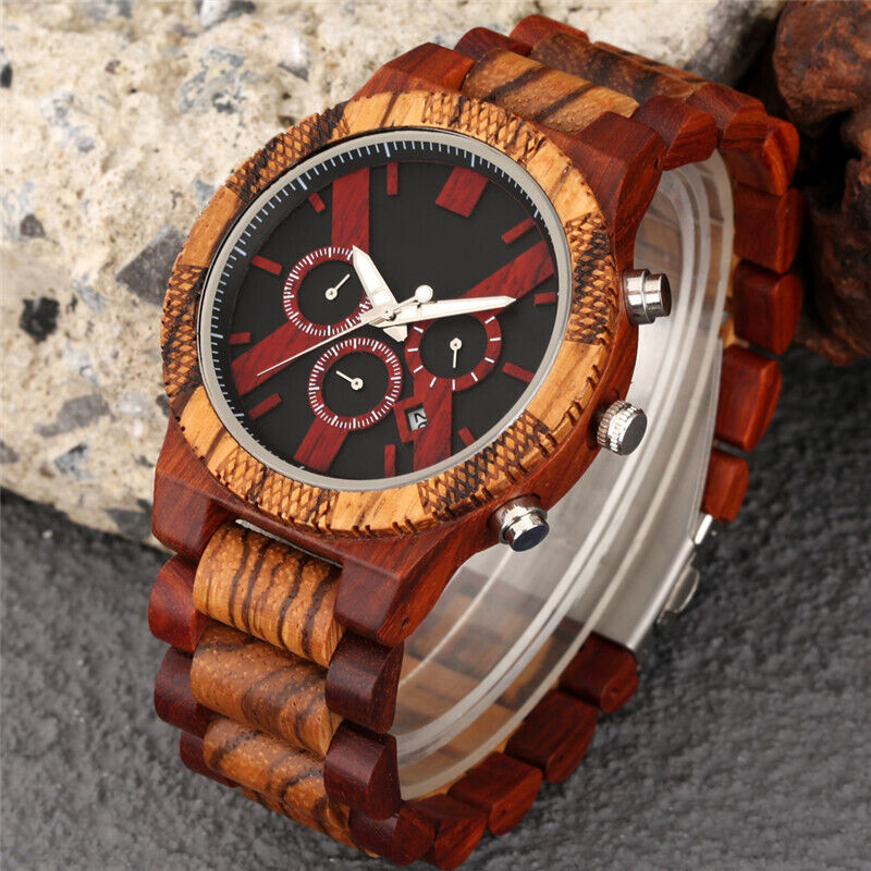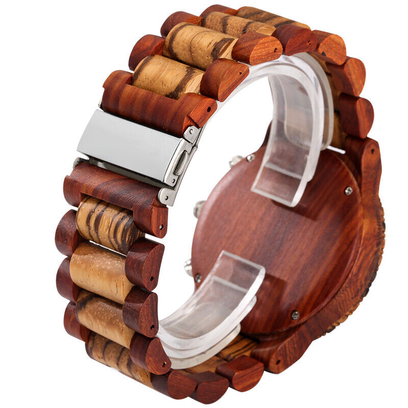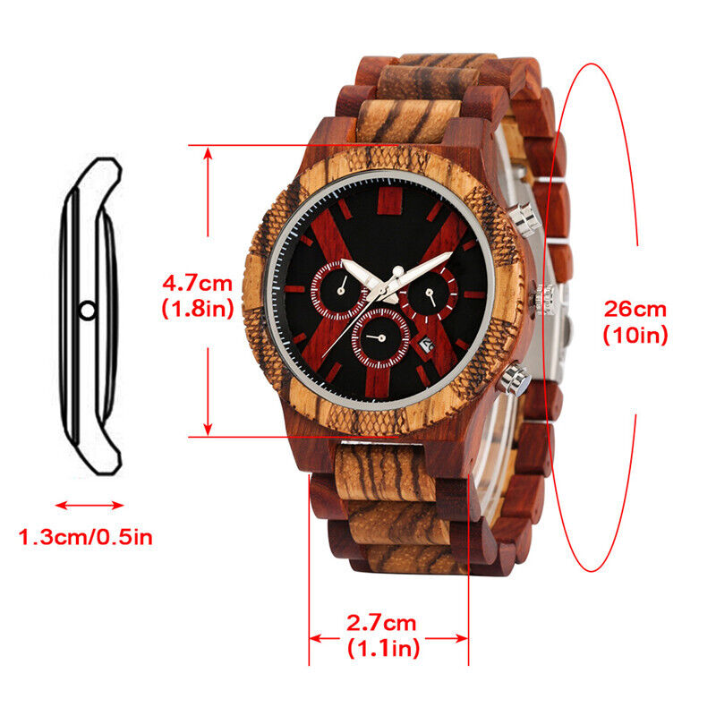 Wooden Watch Care: Given the wooden design, follow care instructions to preserve the integrity of the wood. Avoid prolonged exposure to extreme conditions to maintain the watch's aesthetic appeal.