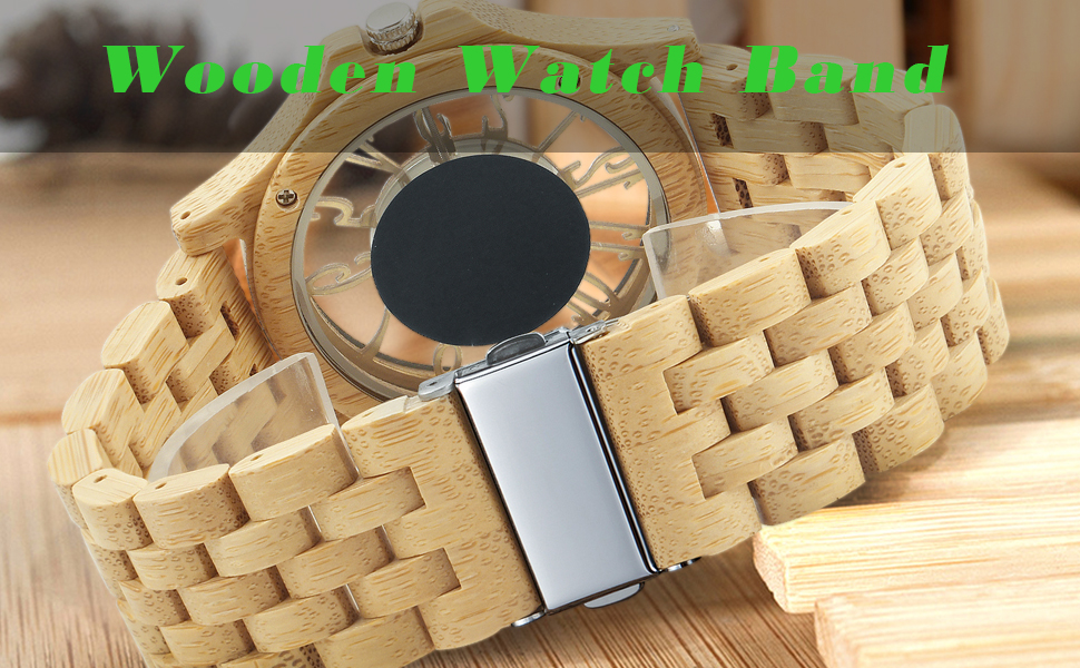 • Wooden Material: The wooden strap is made of natural wood, which is low allergenic and adjustable. The surface of this wooden watch is smooth and lightweight, making it comfortable to wear.