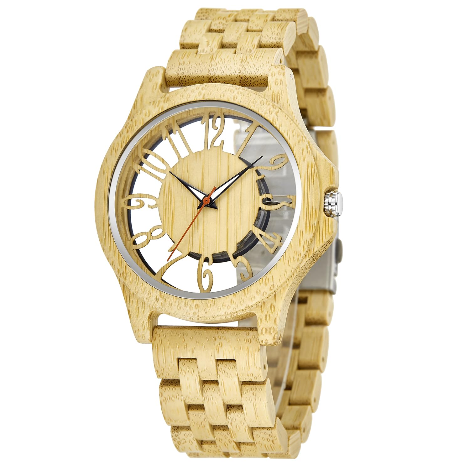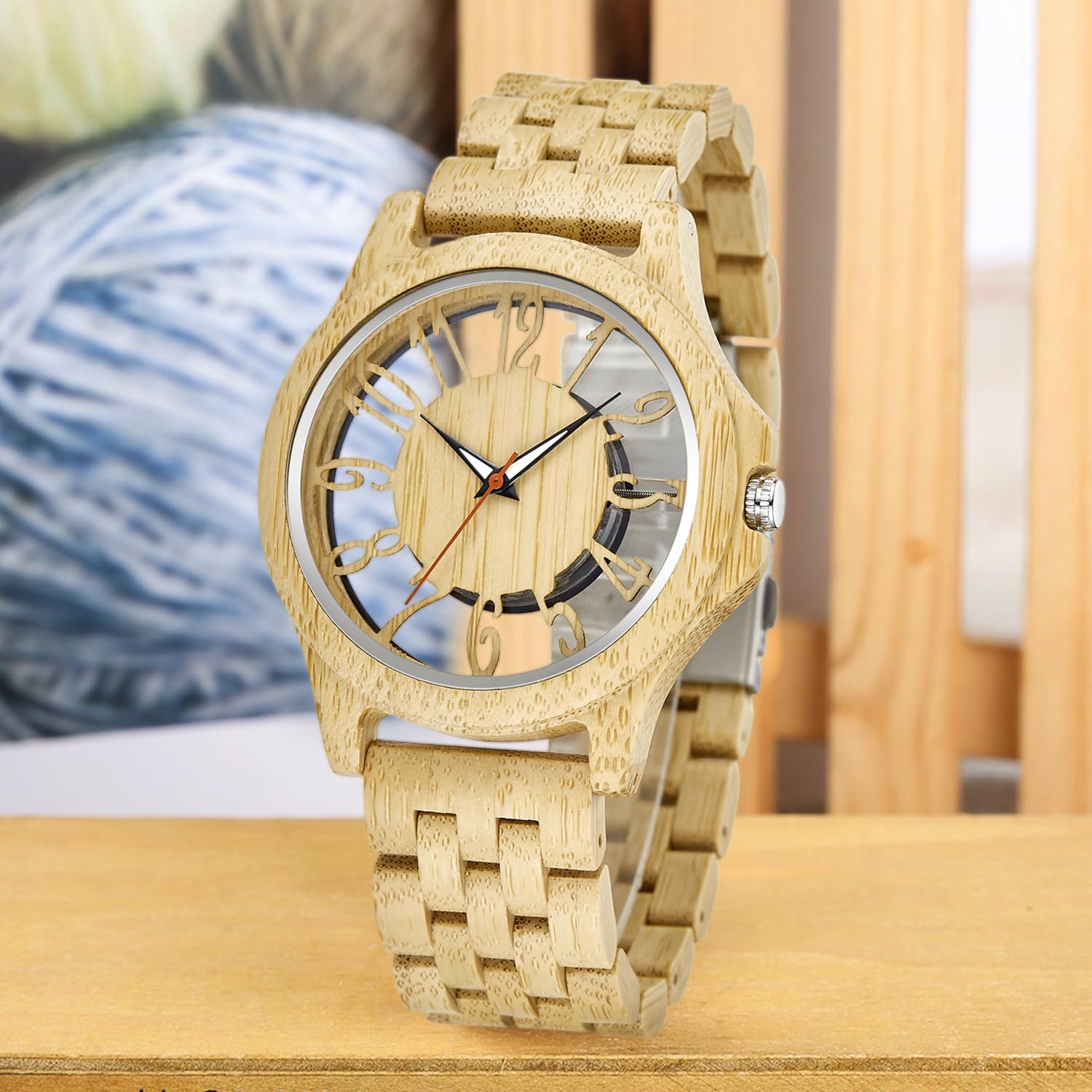 • This yellow transparent wooden watch with a dial will set you apart and is a new fashion way to showcase your personal style. The natural wooden material makes it very comfortable to wear on the wrist, lightweight, and very comfortable to wear on the wrist.